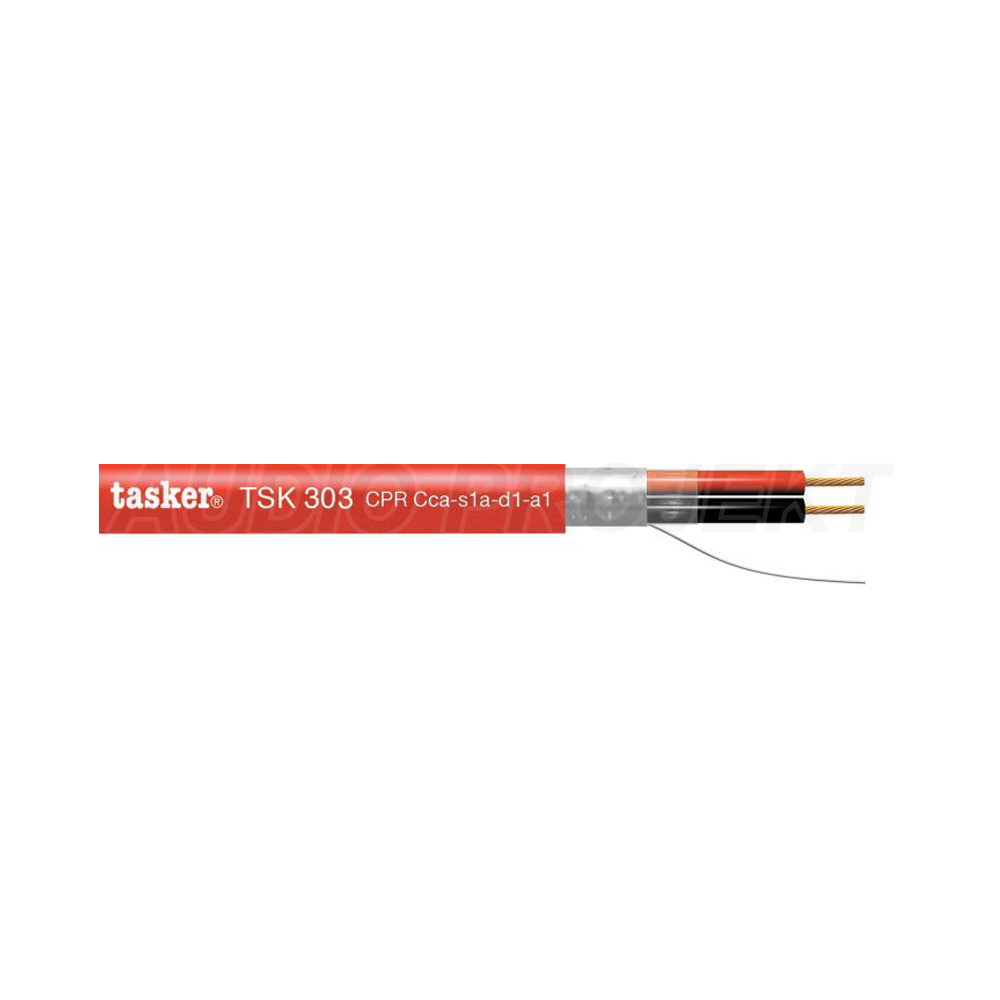 Tasker TSK303 je evakuacijski kabal za glasovne sisteme sa violet L.S.Z.H. plaštom, namijenjen za profesionalne instalacije.