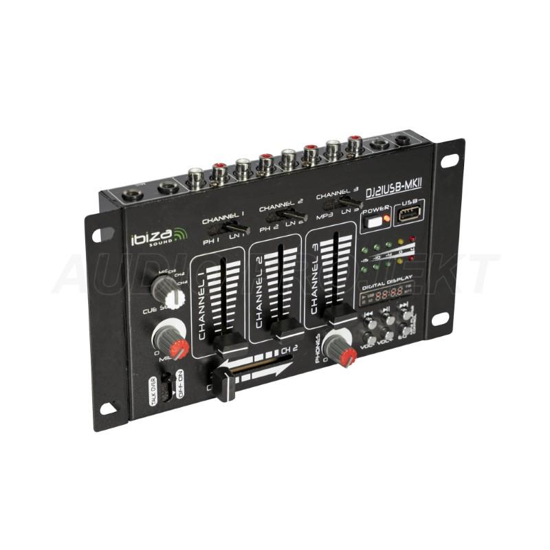 IBIZA DJ21USB-MKII je kompaktni DJ mikser sa USB MP3 plej funkcijama, talkover mikrofonskom kontrolom, headphone cue monitoring-om, LED VU metrom i digitalnim displejem — idealan za početničke DJ setove, karaoke, kućne žurke i mobilne nastupe.