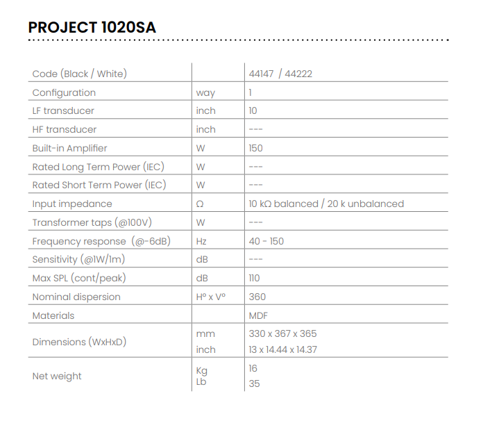 PROJECT 1020SA je izuzetno kompaktan i snažan 10″ aktivni subwoofer