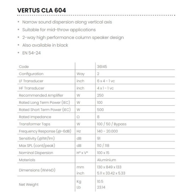 VERTUS CLA obitelj zvučnika stvorena je za integraciju profesionalne line array tehnologije u izuzetno kompaktne i elegantne zvučničke stupove i subwoofere. Može se integrirati u bilo koje okruženje ili instalaciju koja zahtijeva visokokvalitetan zvuk i kontrolirane usmjerene karakteristike.