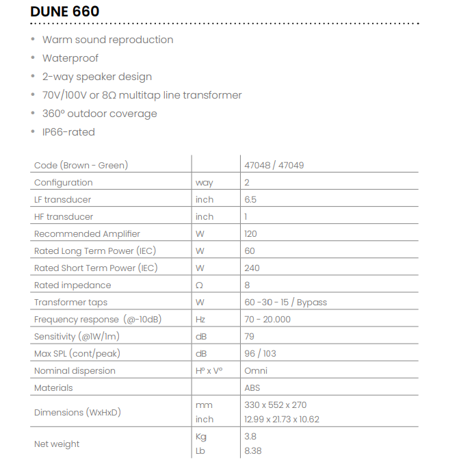 ZVUČNIK VANJSKI VRTNI FBT DUNE660 60W/100V IP66